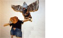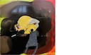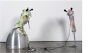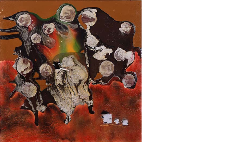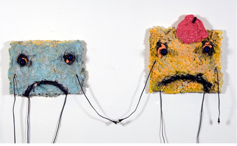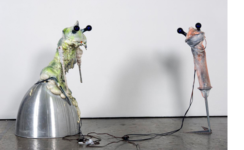 Polyurethane, epoxy resin, spray paint, and light bulbs on panel