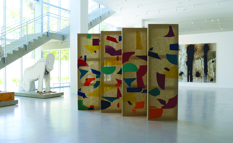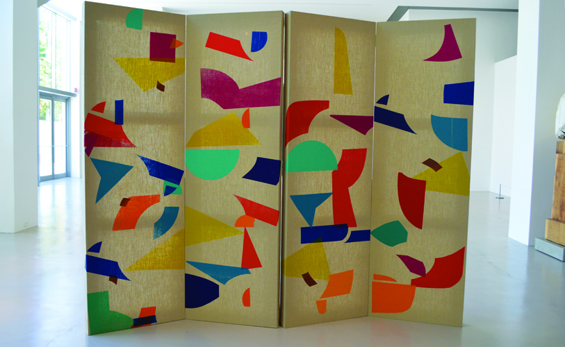 Ink Process (Four panel Installation), Screen print on linen, 110" x 36" each, 2015 -- Image courtesy of de la Cruz Collection