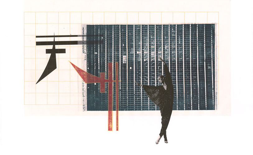 Merce Out, Digital print and chine-colle on paper, 25" x 30", 2014