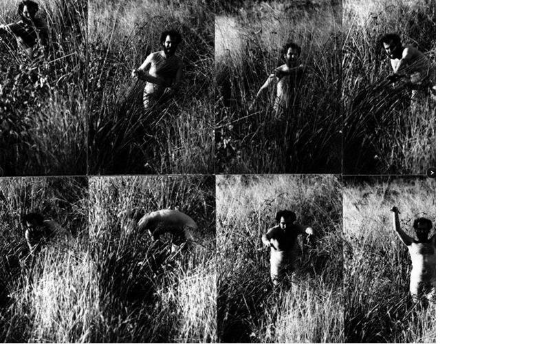 Myself Becoming One with the Tree #2, photographic series, 1969, 16 x 60 in