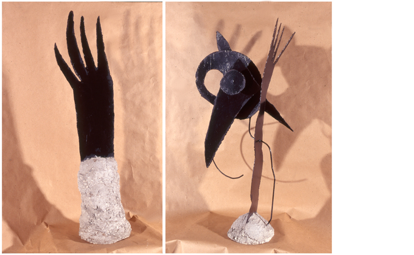 Manos.1990. lacquered steel and concrete 41" x 22" 14"